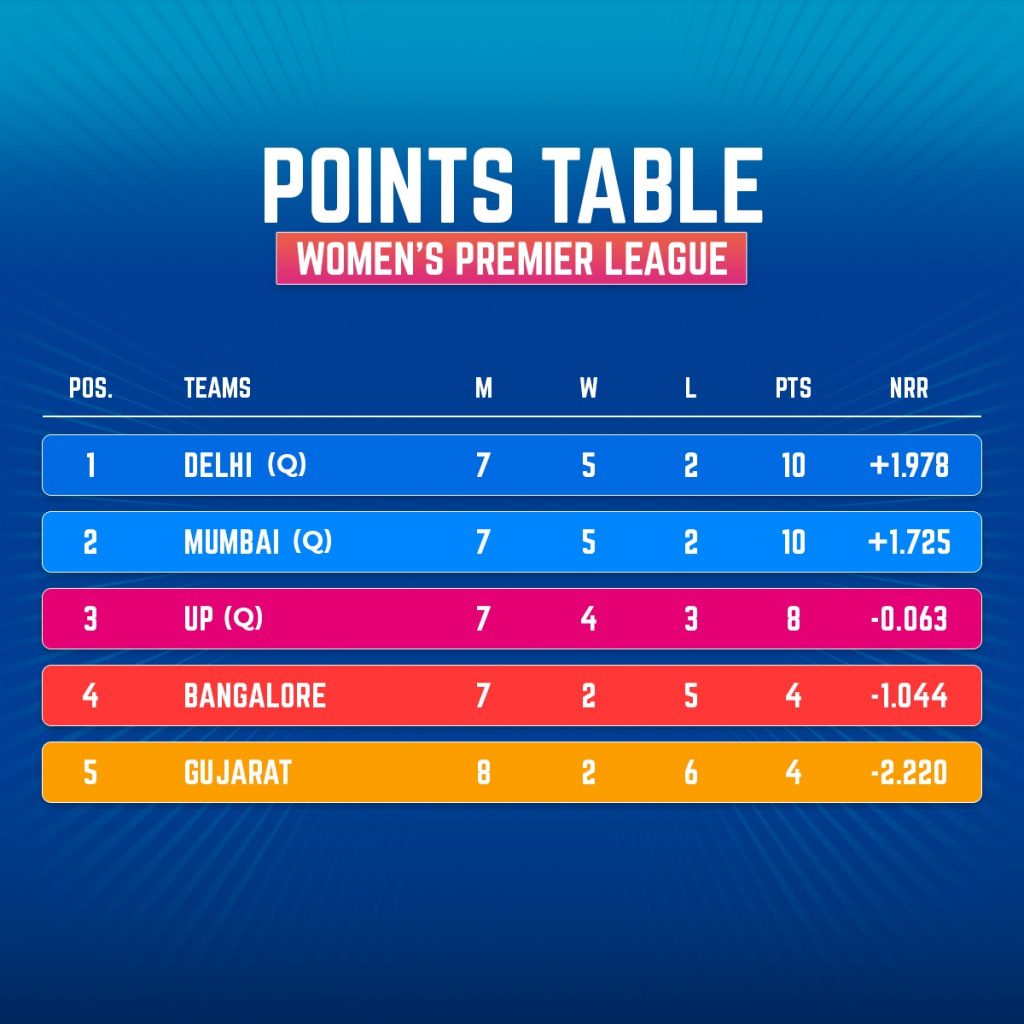 Now, with this massive win, Delhi moved to the top of the points table and has a brilliant chance to earn their direct qualification for the finals of the inaugural edition of the Women’s Premier League. For that, all Delhi will have to do is win their final league game against UP Warriorz by a comfortable margin.