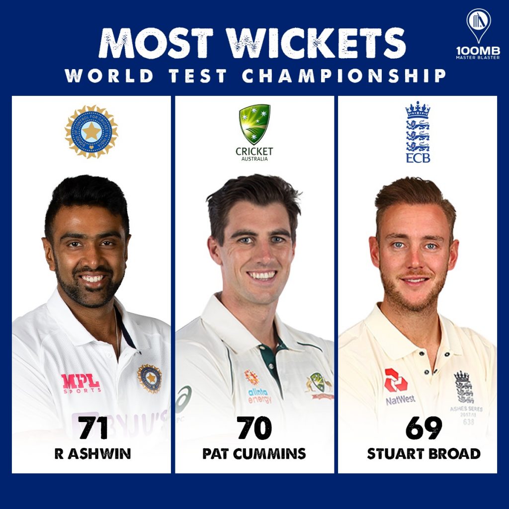 71 – Ravi Ashwin picked up 2 wickets in the second innings taking his wickets tally to 71 in WTC. He became the top wicket-taker of the championship going past Pat Cummins (70).