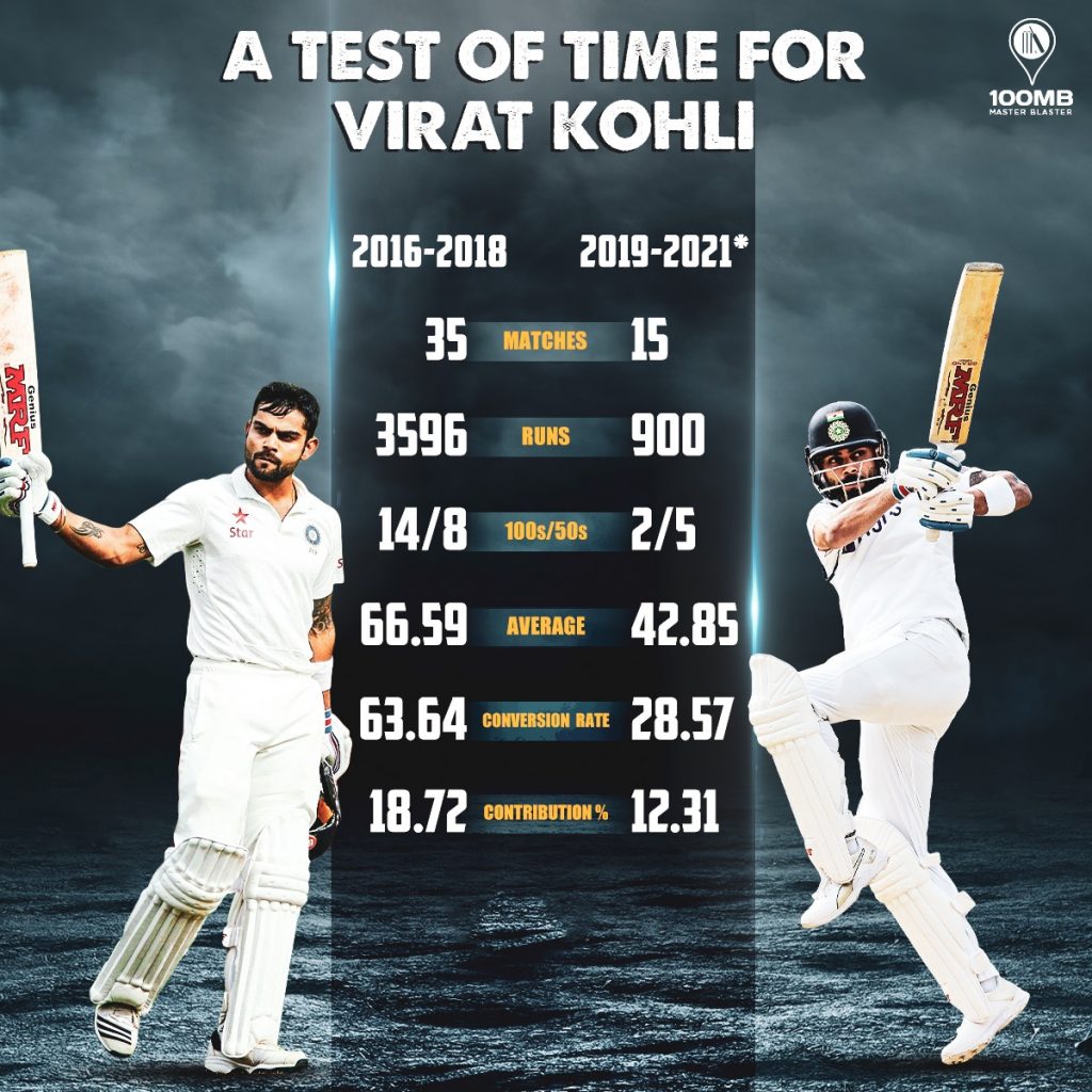 Kohli’s average in Tests dropped to 42.85 in the period since 2018. While it is a batting average good enough for any middle-order batsman, it does injustice to the genius of Virat. Ever since his century against Bangladesh in India’s maiden day-night Test, the Indian captain has crossed the score of 50 in Tests only on two occasions. And he has failed to touch the three-figure mark.